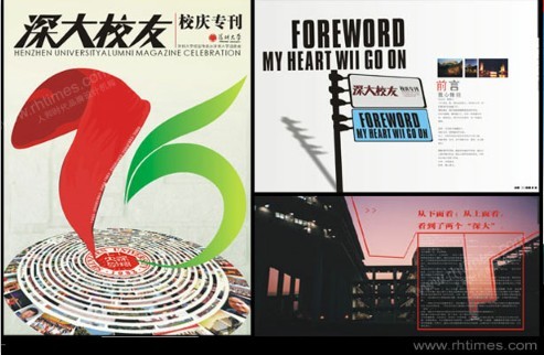 這個是人和時代專為深大校慶而設計的專刊封面和內頁,可以看到這個設計是為深大周年校慶特意設計的刊物,風格設計上是比較喜慶,信息等內容也是很細致的,整體突出了深大對周年校慶的喜悅與熱愛。