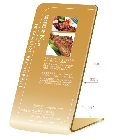 酒店餐廳內要是有新品上架,酒店一般是通過設計師設計制作特別介紹卡來向顧客們推薦新品菜式。