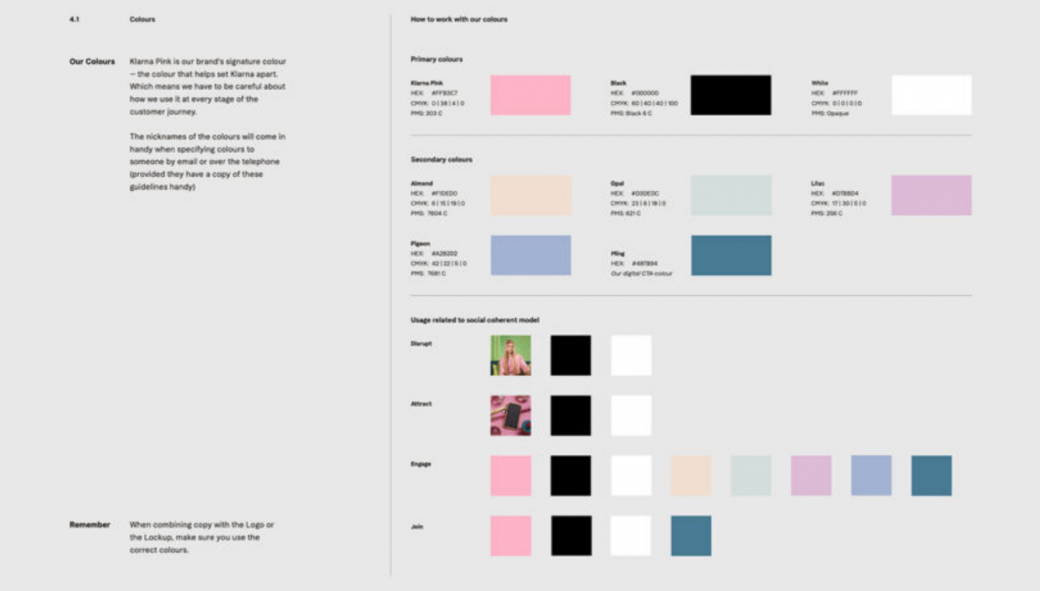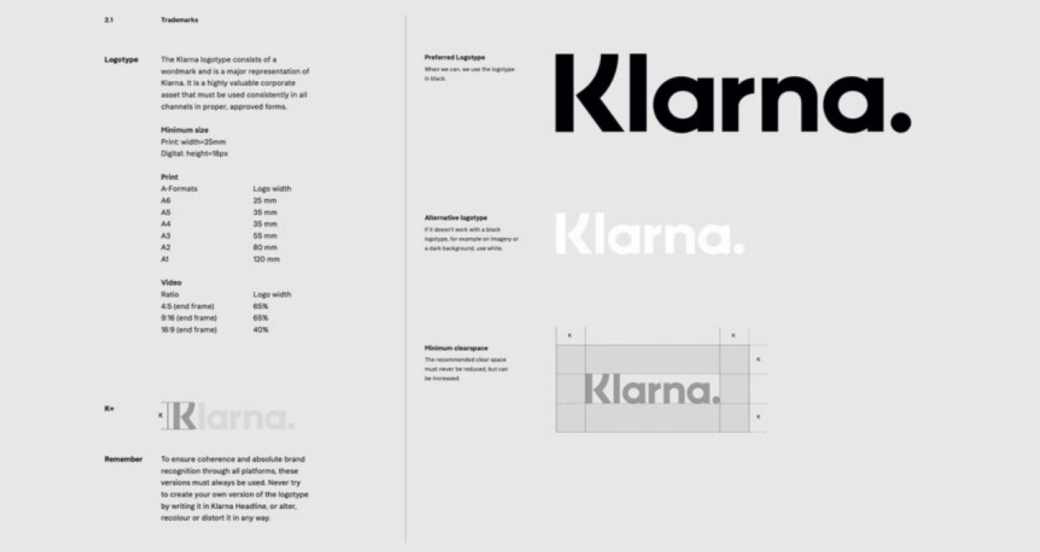 其品牌手冊的文字部分甚至包括一個決策樹,幫助用戶確定何時使用“科技能源品牌”——一個抓住 Klarna 精髓的諷刺性拼寫錯誤。