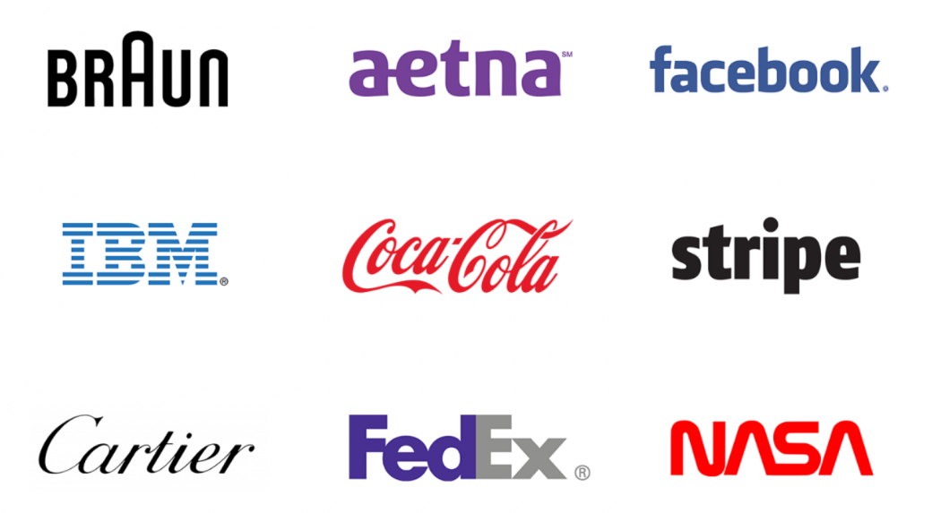 文字商標徽標的示例包括:Braun、Aetna、Facebook、IBM、可口可樂、Stripe、Cartier、FedEx 和 NASA。